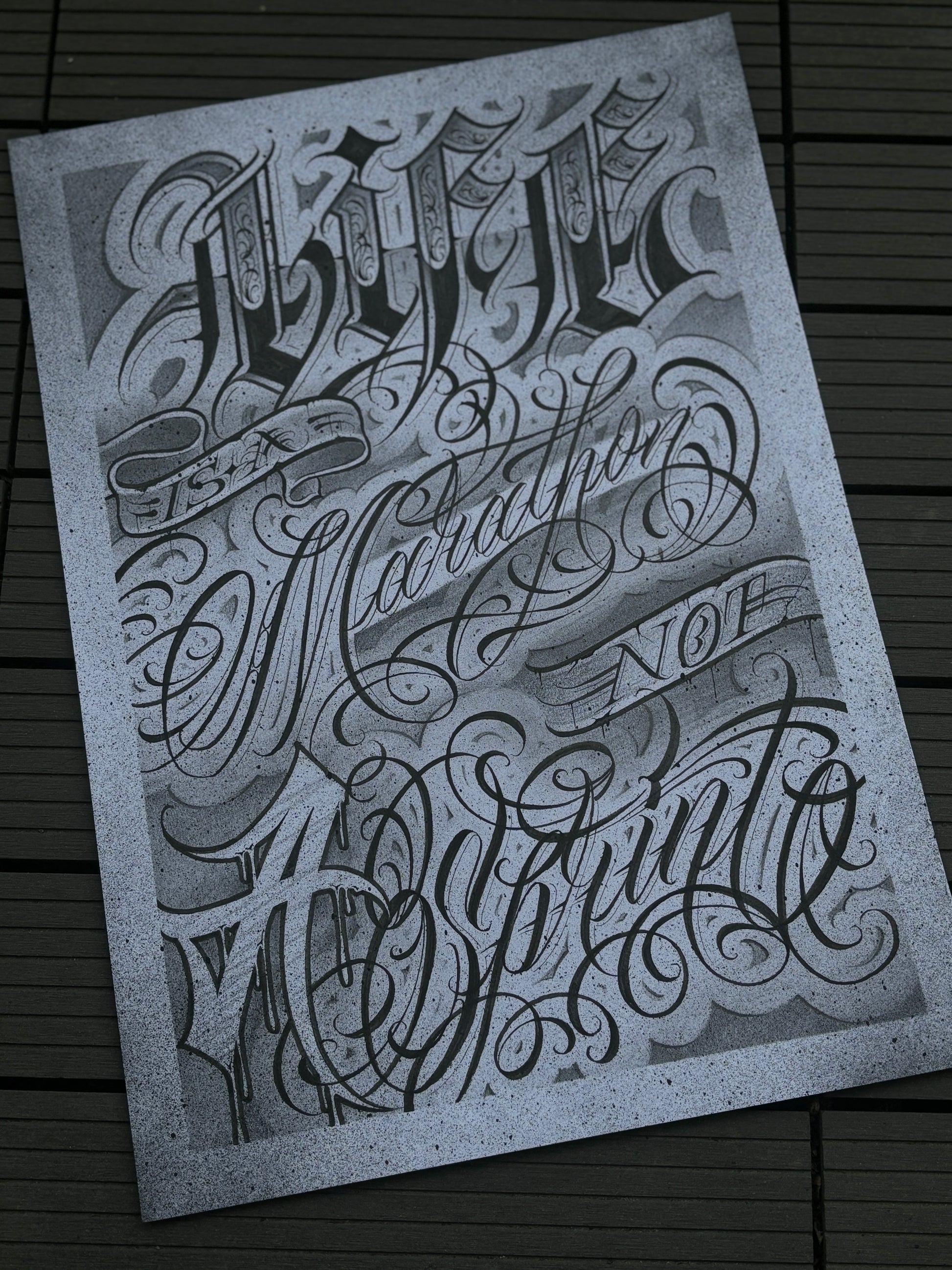 LIFE IS A MARATHON NOT A SPRINT a powerful typographic high quality print showcasing the word " LIFE IS A MARATHON NOT A SPRINT" in diffrent expressive fonts.