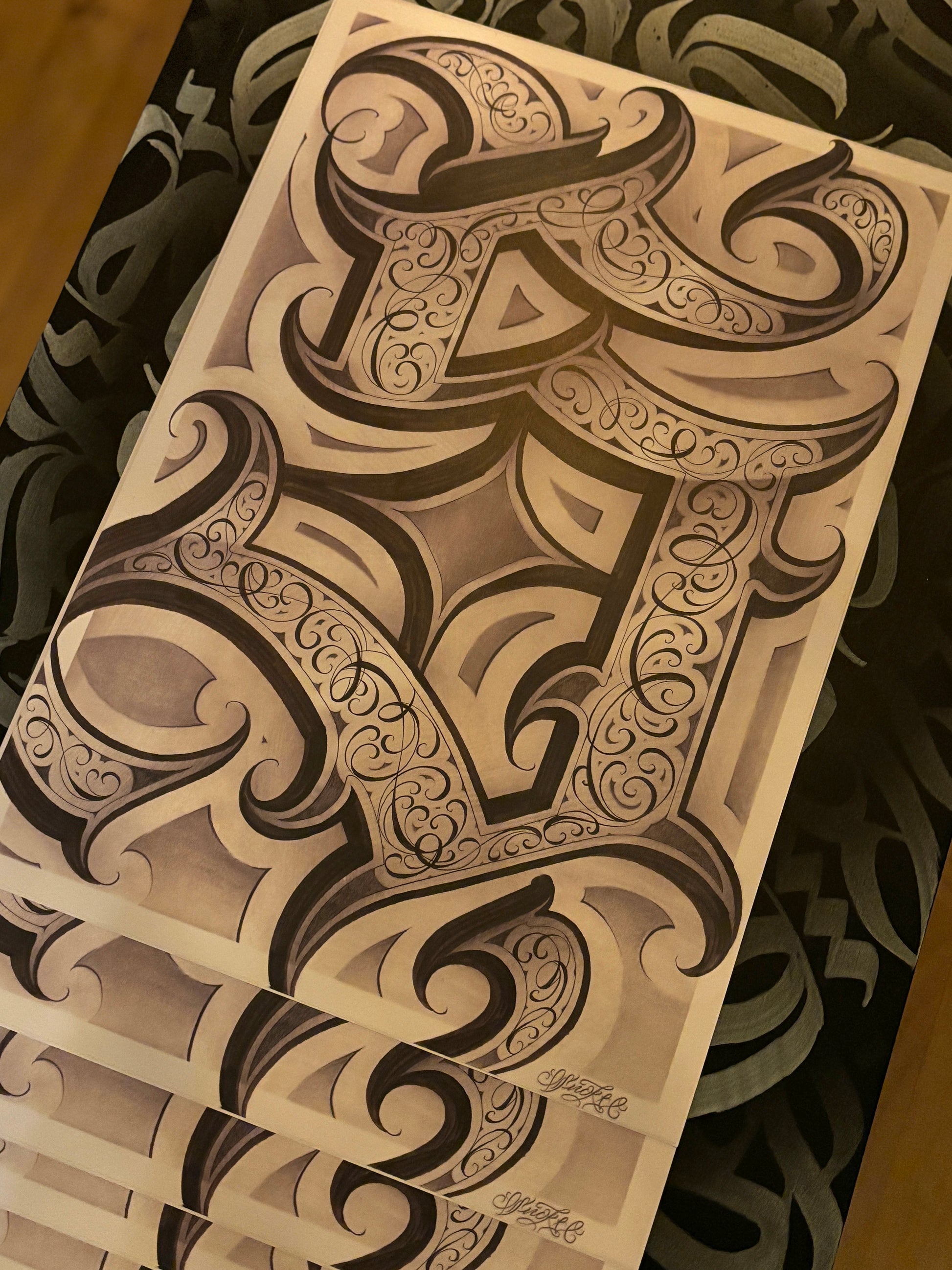 big "S" with Ornament Detailing: This print features a large, bold “S”, carefully hand-painted with intricate ornamental elements inside the letter. The design reflects my signature style—where minimalism meets complexity—offering a striking visual contrast. Each line and curve has been meticulously created by hand, making this print a truly one-of-a-kind piece of art.